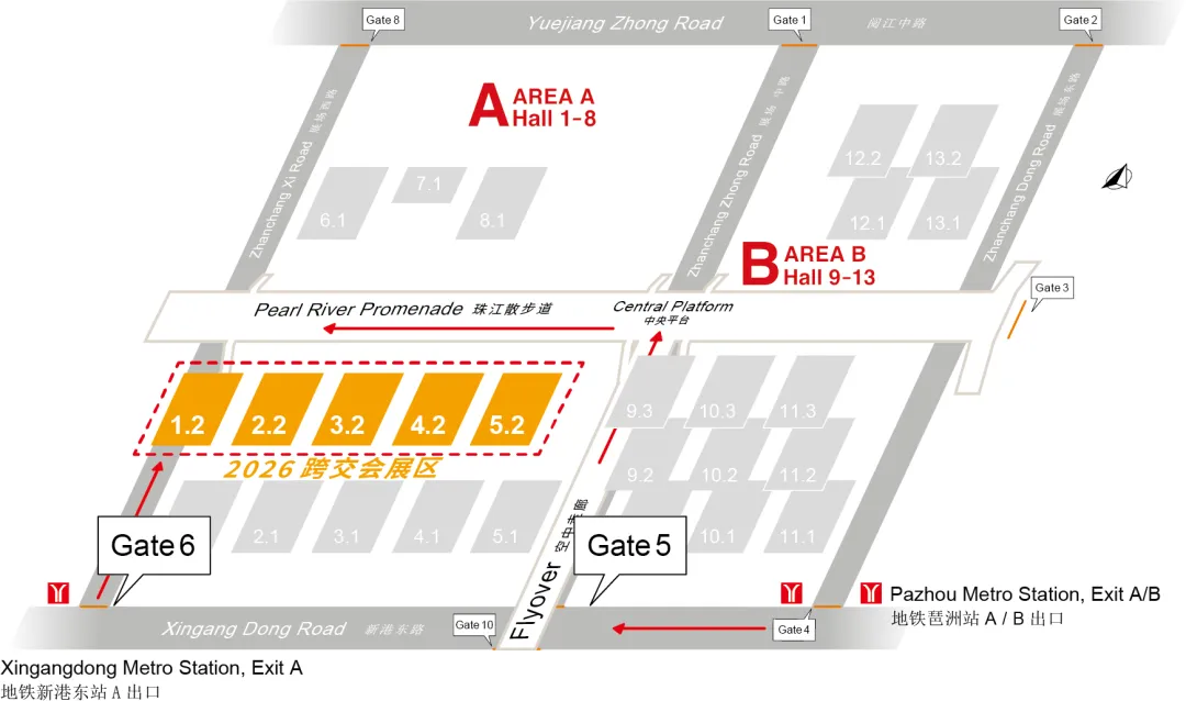 8号线,新港东站(广交会展馆A区)/琶洲站(广交会展馆B区和C区)