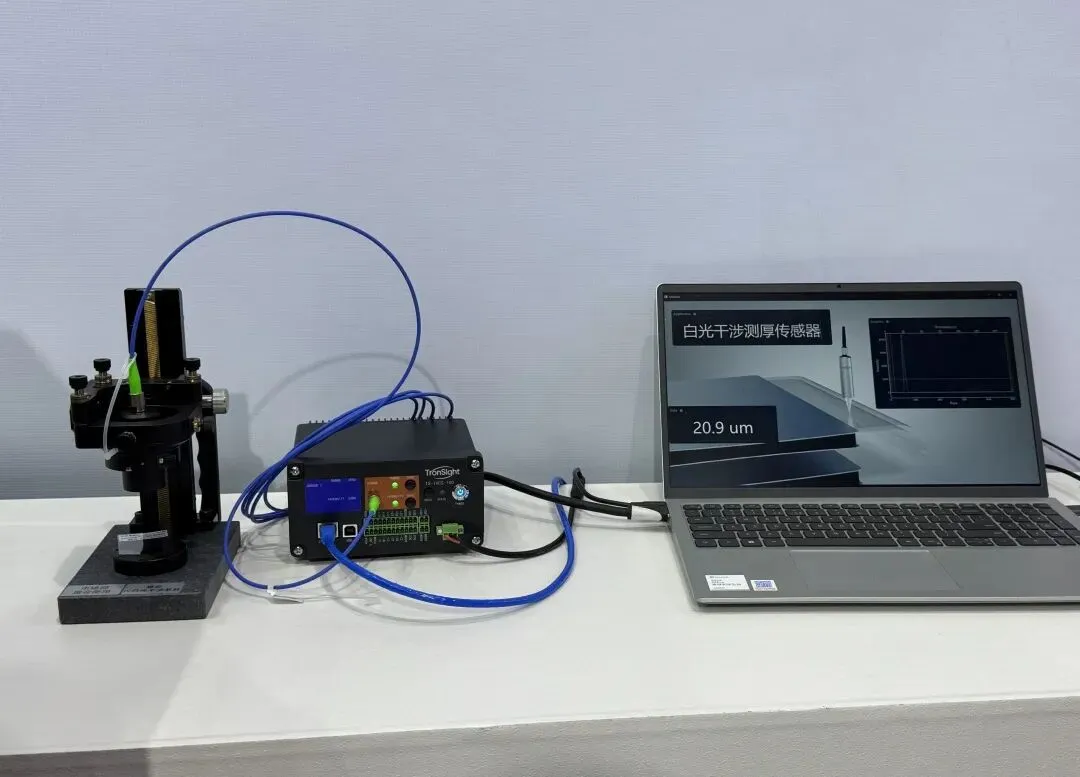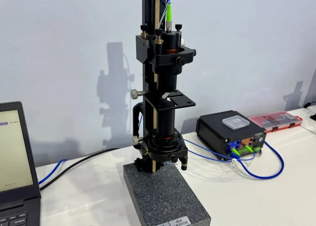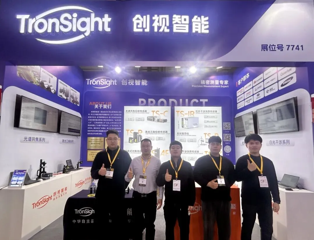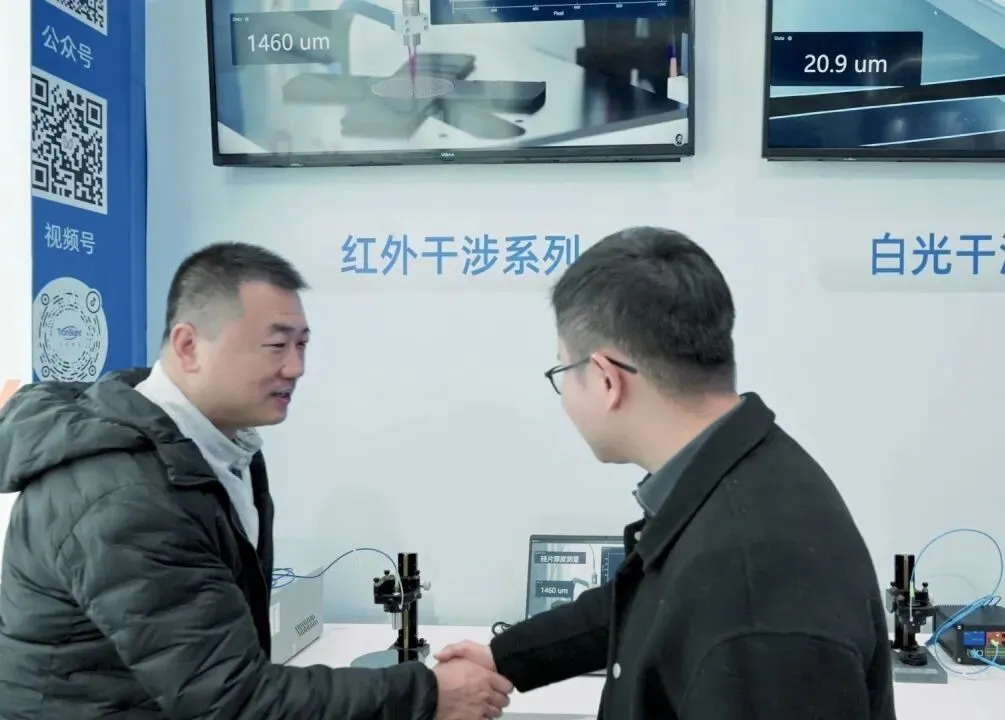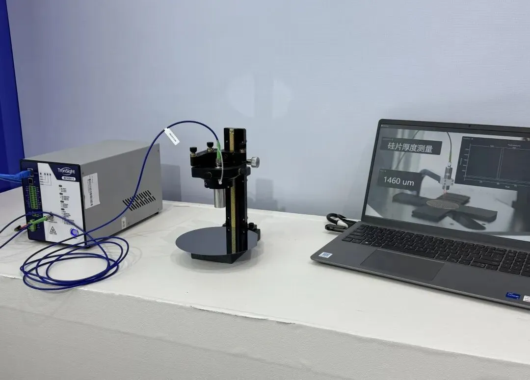 展会现场,创视智能重点展示了光谱共焦位移传感器对射测厚、小型激光位移传感器测量高频振动、红外干涉传感器测量硅片厚度、白光干涉传感器测量膜厚等一系列前沿测量解决方案,全面覆盖半导体、新能源、精密制造等核心应用场景。