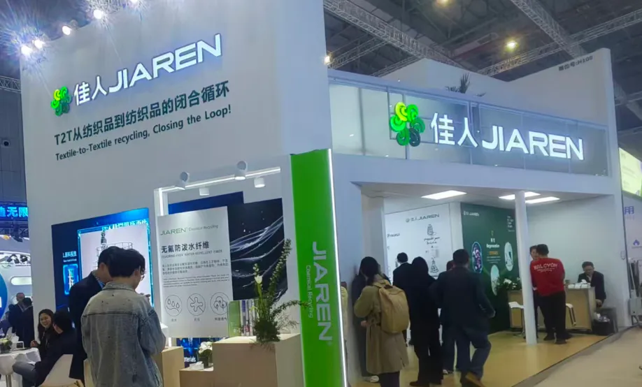 浙江佳人重磅推出的佳人化学法再生无氟防泼水纤维、佳人化学法再生超消光防透视抗紫外线纤维以及创新产品ECOSOTM(伊可柔TM)。