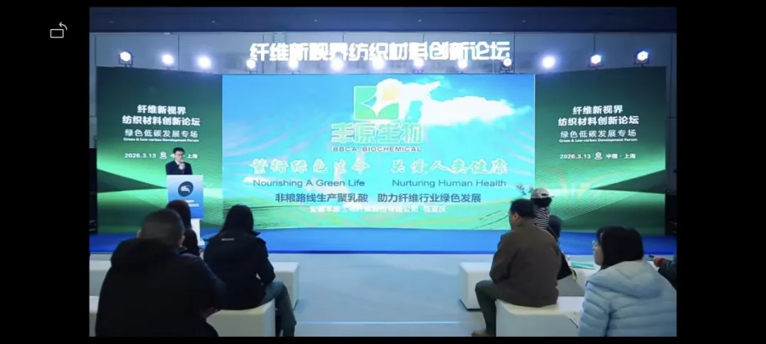 “纤维新视界——纺织材料创新论坛之绿色低碳发展专场”中,唐山三友集团兴达化纤有限公司总经理助理兼产品研发部部长刘辉作了《循环为始,共赴纤维进化之路》报告,中国石油大庆石化分公司化纤开发组组长党妍姝作了《多彩纤维赋能品质生活》报告,安徽新登利环保科技有限公司营销总监刘宁作了《新登利环保·T2T化学法再生BHET工艺的市场应用》报告,上海安凸阻燃纤维有限公司总经理付常俊作了《高温微交联陶瓷化赋能本质阻燃不熔滴尼龙66纤维》报告,安徽丰原生物纤维股份有限公司董事长范亚庆作了《非粮路线生产聚乳酸,助力纤维行业绿色发展》报告。