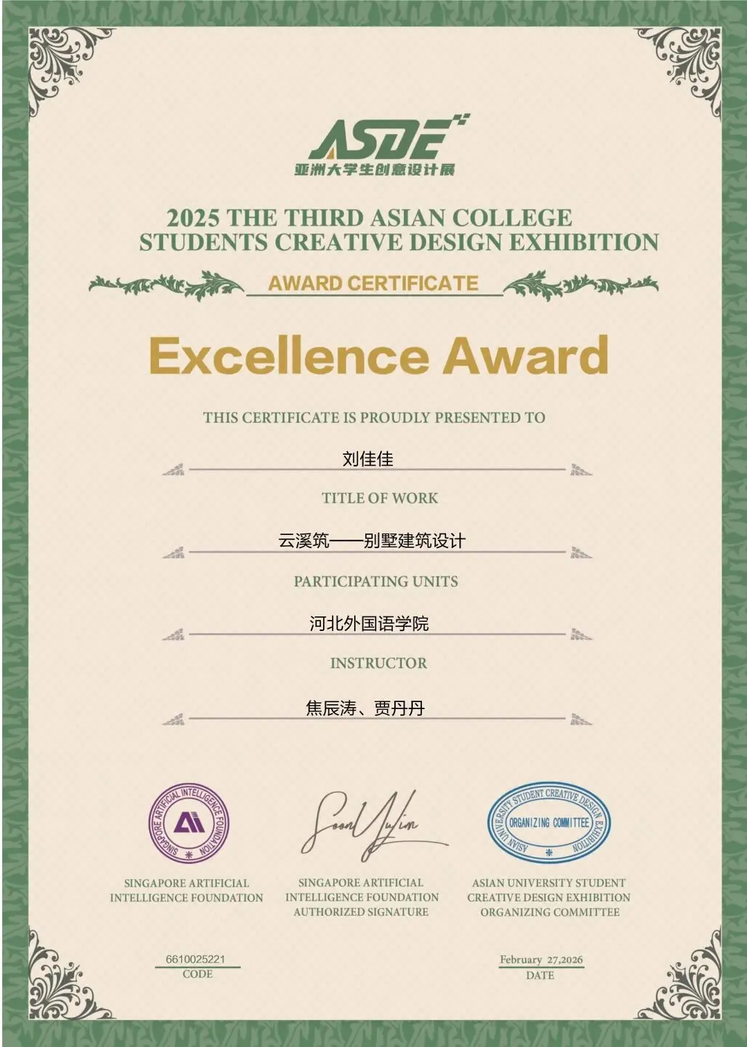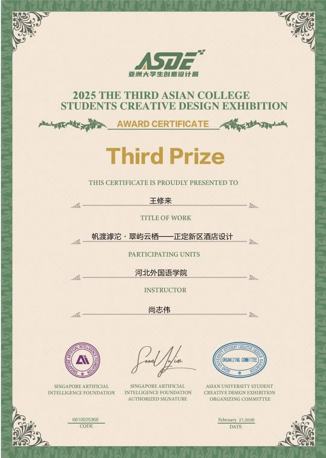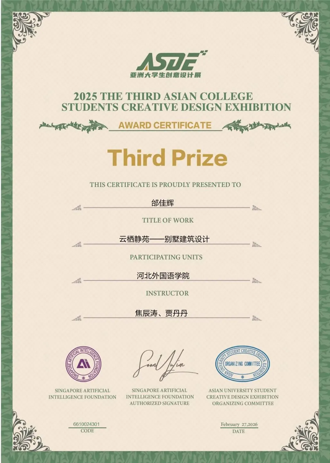 涉外建筑工程学院经过校内选拔,选送优秀学生作品参赛,冲刺国际级设计赛事,喜获一等奖3项,二等奖5项,三等奖12项,佳作奖11项。