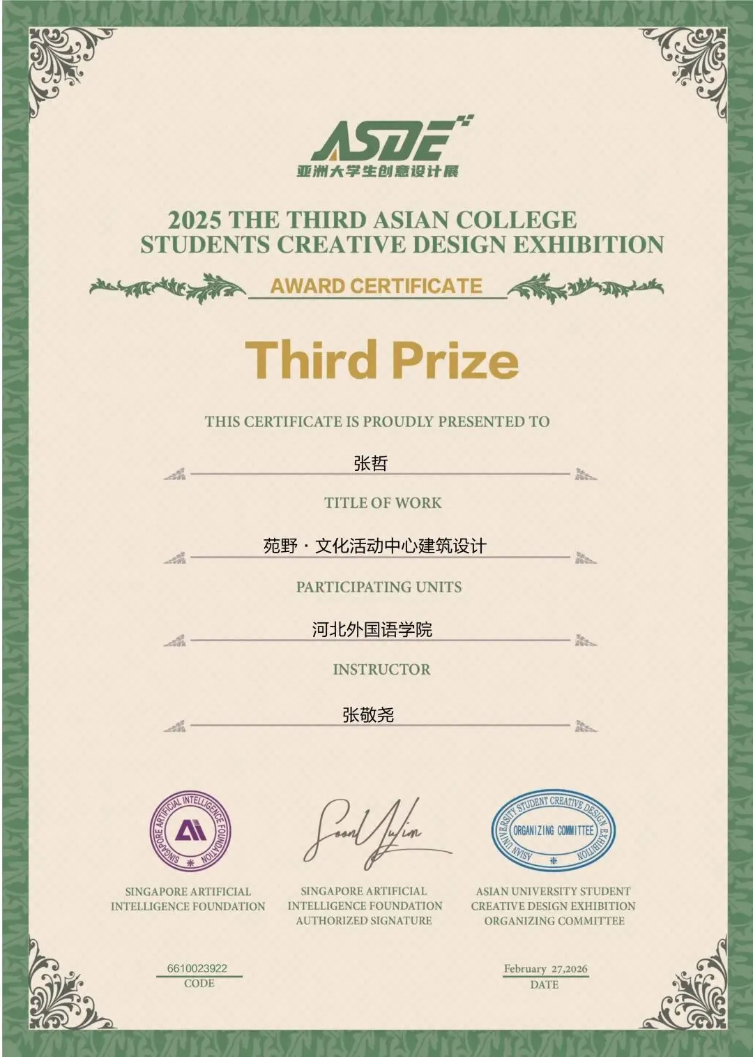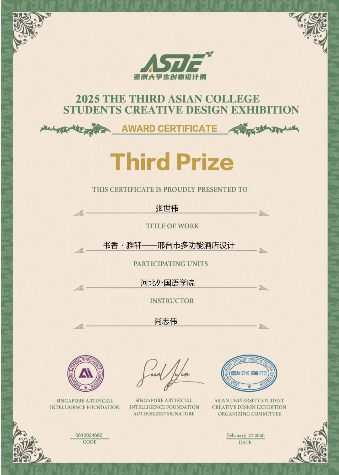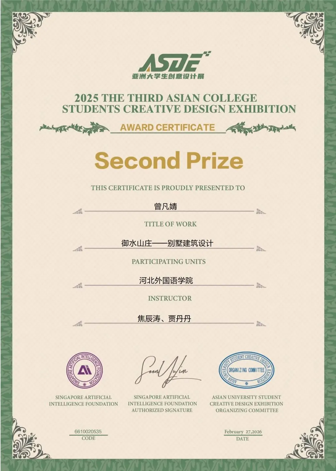涉外建筑工程学院经过校内选拔,选送优秀学生作品参赛,冲刺国际级设计赛事,喜获一等奖3项,二等奖5项,三等奖12项,佳作奖11项。