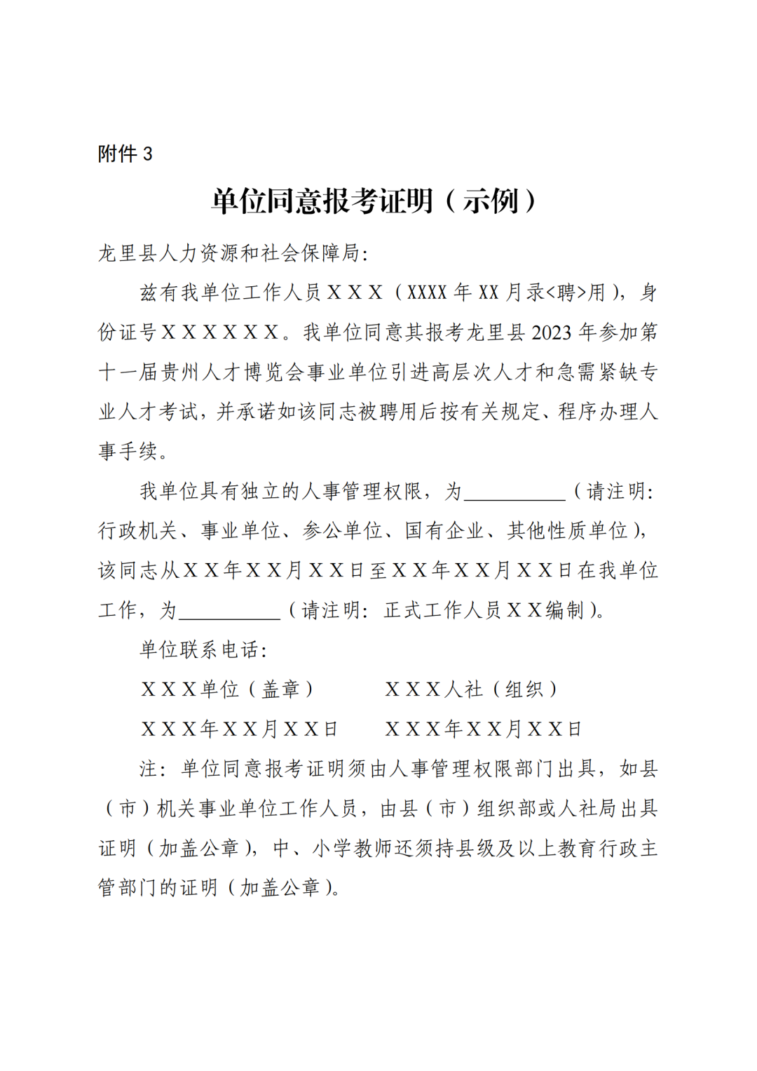 (六)在职人员须持所在单位同意报考证明(附件3)(其中,机关事业单位在职人员还应加盖县级以上组织或人社部门同意报考意见)。