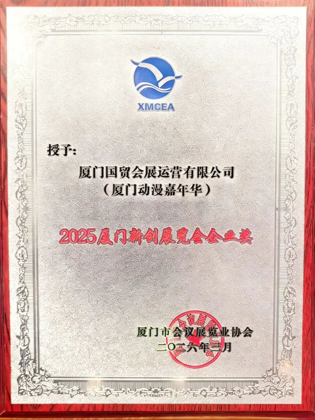 3月20日,在厦门市会议展览业协会第五届第七次会员大会上,国贸会展运营公司凭借2025年厦门动漫嘉年华的创新实践与亮眼表现,荣获“2025厦门新创展览会企业奖”,取得行业权威认可。