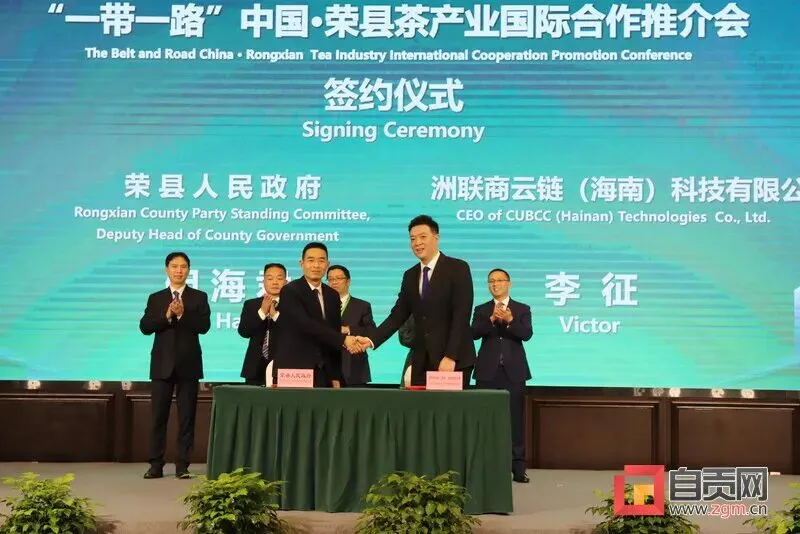 推介会上还发布了国际茶叶采购需求信息;春兰茶业、巅峰仙芽等荣县茶企作企业推介;三国外企代表、茶叶协会通过网络连线作茶叶需求介绍;荣县政府与洲联商云链(海南)科技公司签订《荣县与洲联商云链(海南)科技公司招商协议》,印度尼西亚茶叶协会与荣县茶产业协会签订《荣县茶产业协会与印度尼西亚茶叶协会谅解备忘录(MOU)》。