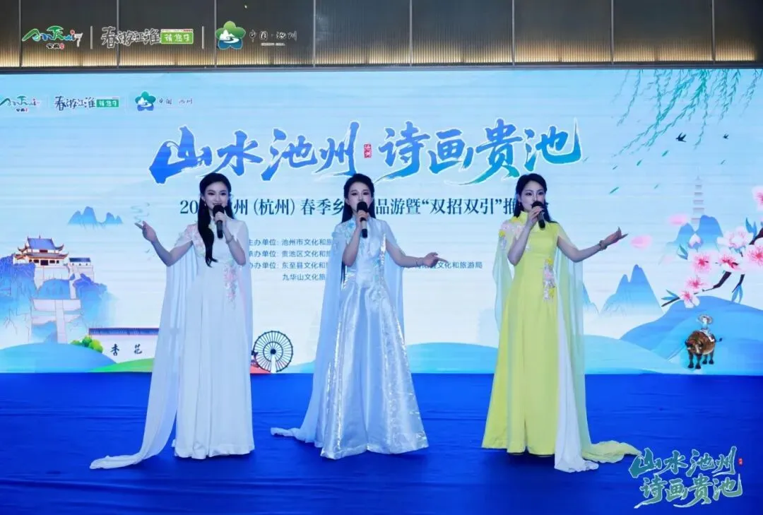 贵池区以“春遇贵池、诗画寻踪”为主题,重点推介了春季乡村旅游精品线路,诚邀八方游客邂逅春日诗意。随后,东至、青阳、九华山等地文旅代表依次登台,集中展示区域特色资源,实现“强强联合”推介,全方位传递池州文旅好声音。