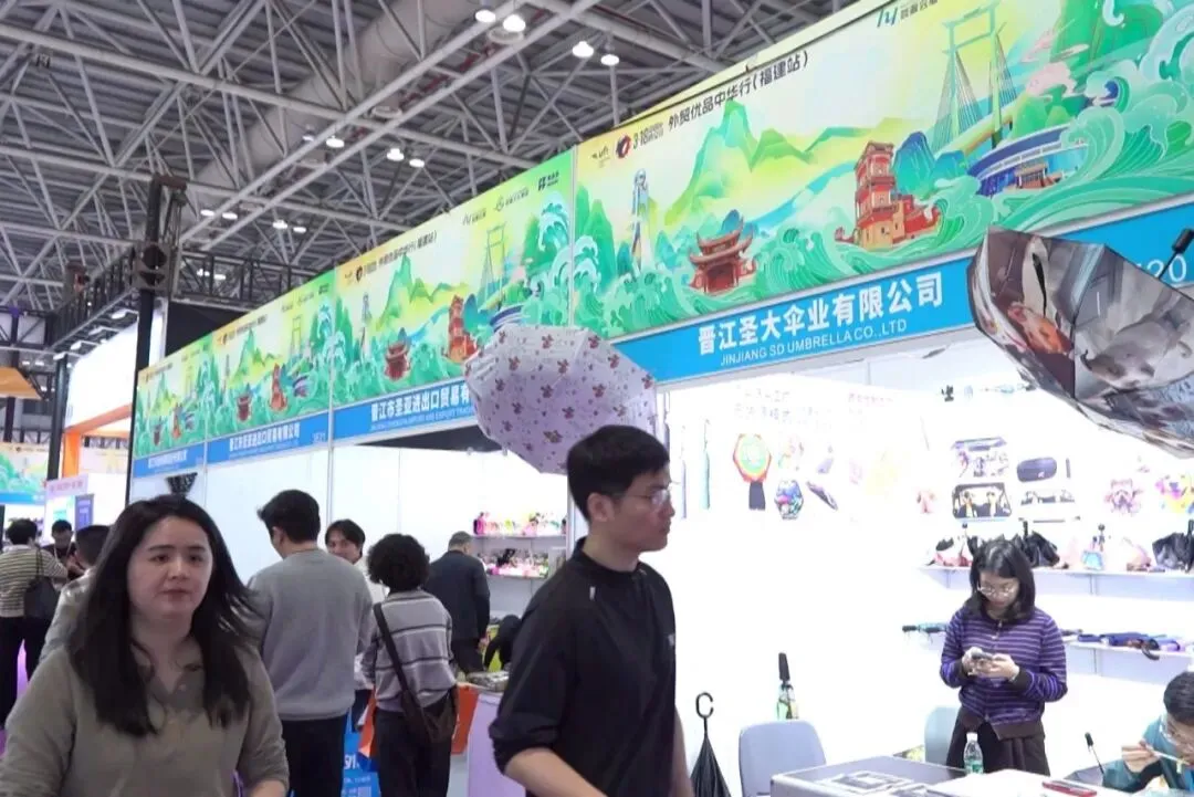 在超1000平方米的“晋品出海 贸通全球”专区,鞋服、纺织面料、雨伞、体育用品、创意设计、AI机器人等全品类123个展位,人气满满。掌中木偶等非遗展演携晋江老字号也一同亮相,展现晋江智造与文化魅力。