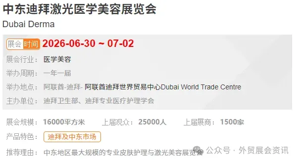 中国展商机会:光电设备、注射耗材、医用敷料、功效药妆(性价比 + 技术优势显著,2026 预计中国展商30 + 家)