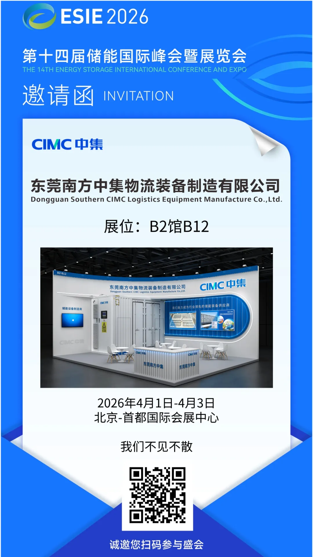 我们诚邀各界朋友莅临B2馆B12展位,见证中集智造,共话储能未来!