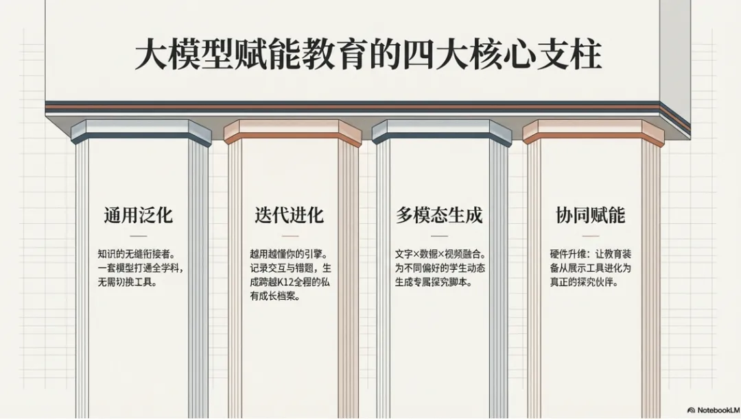 徐研究员随后阐述了大模型的四个特征及其与教育的绑定关系: