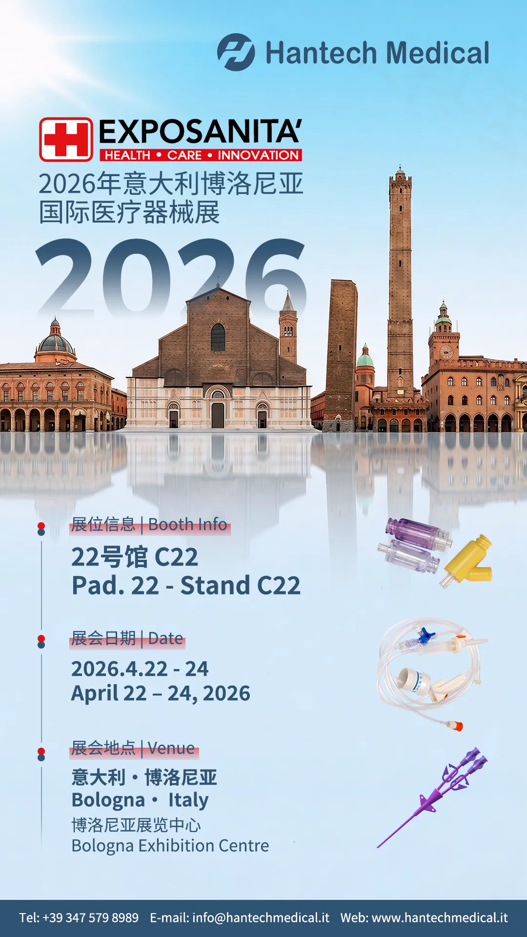 Hantech Medical Italy will exhibit at Exposanità 2026 at Bologna Exhibition Center in Bologna, Italy from April 22 to 24, 2026. See you at PAD.22, Stand C22!