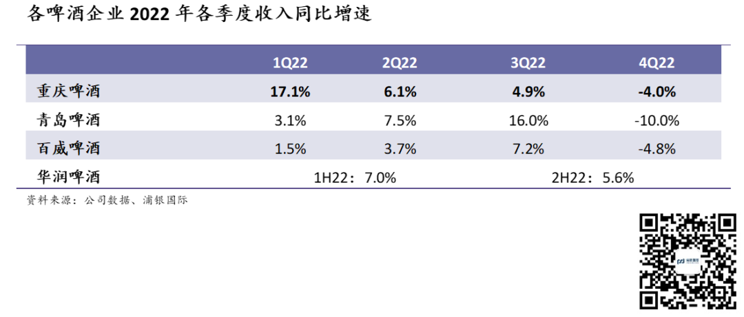 随着重啤后续基数不断降低、现饮渠道重启及消费意愿回暖,重啤2Q23-4Q23的收入有望加速增长,助力2023年全年收入增速优于管理层给出的中到高单位数的增长目标。