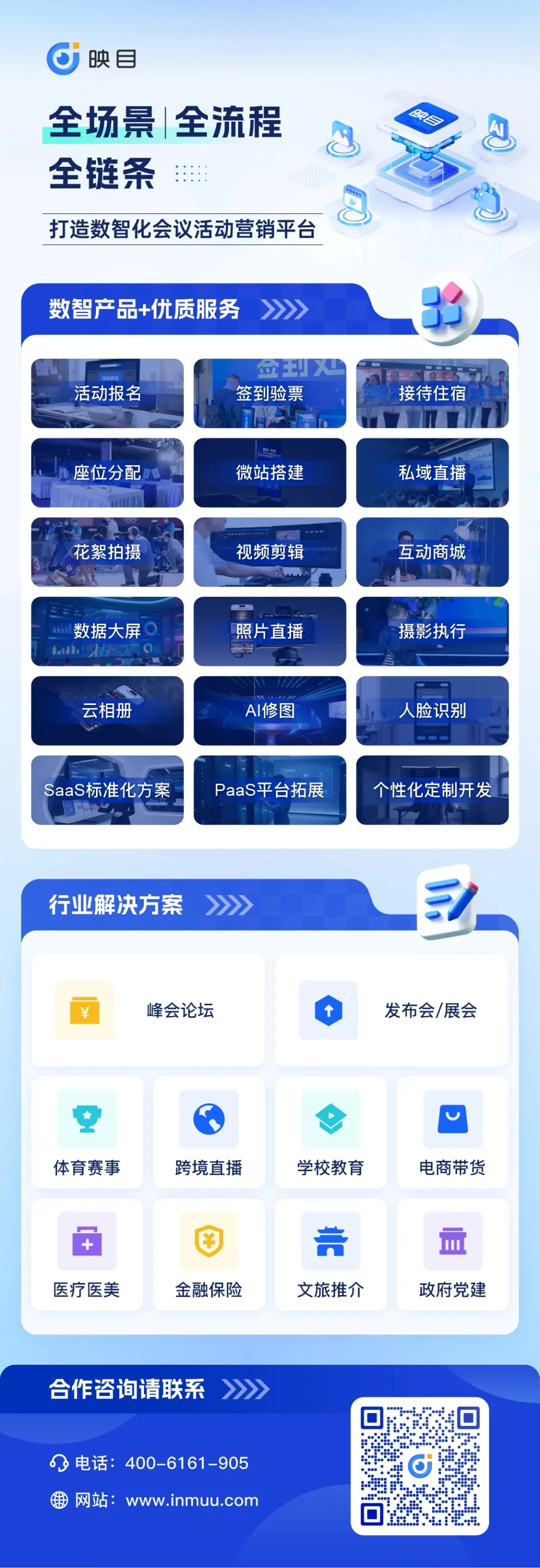 面向企业客户:重点演示如何通过映目活动+映目直播+映目云摄影实现内部培训与外部品牌活动的统一管理;