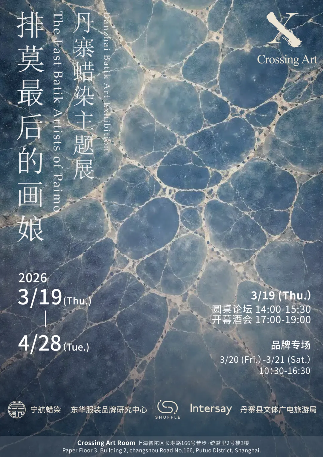 2026年3月19日,由 Crossing Art 携手宁航蜡染、东华大学服装品牌研究中心、Shuffle、Intersay 及丹寨县文体广电旅游局共同举办的“冰裂纹叙事”艺术展在上海开幕。开幕当日,众多艺术爱好者与行业专业人士齐聚现场,共同探讨非遗技艺在当代语境下的表达。