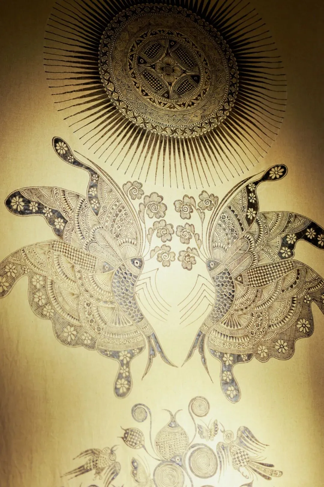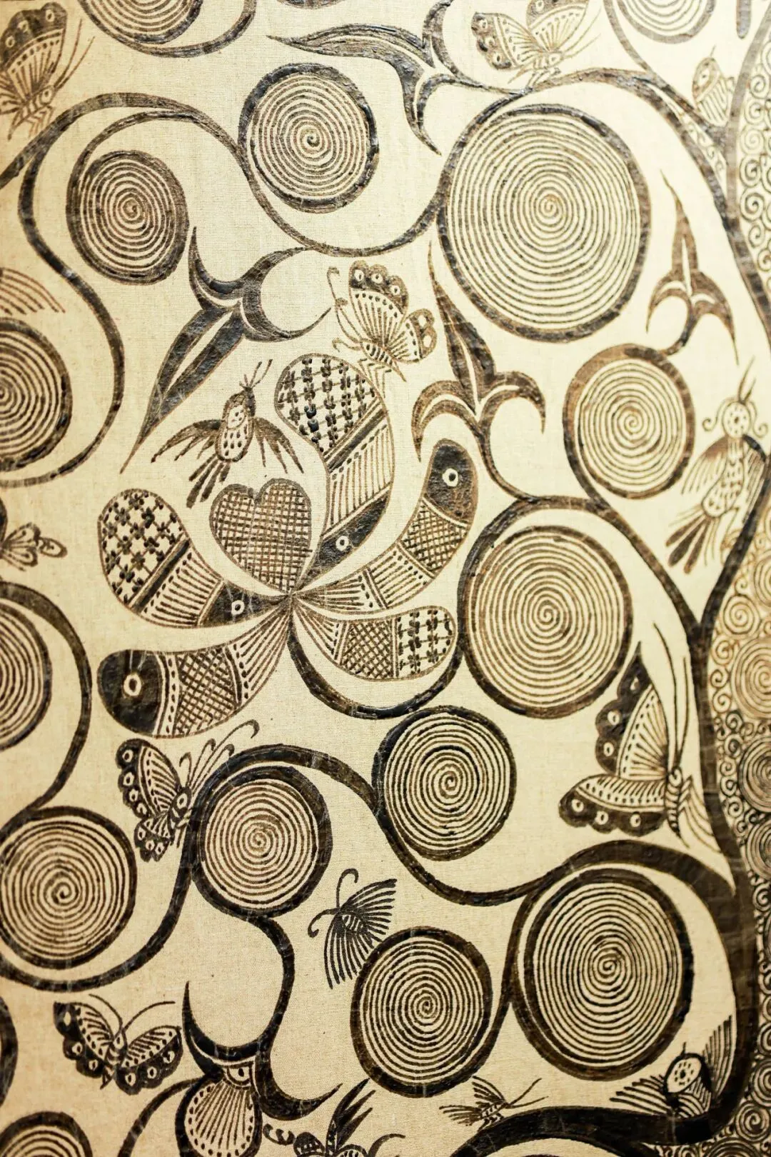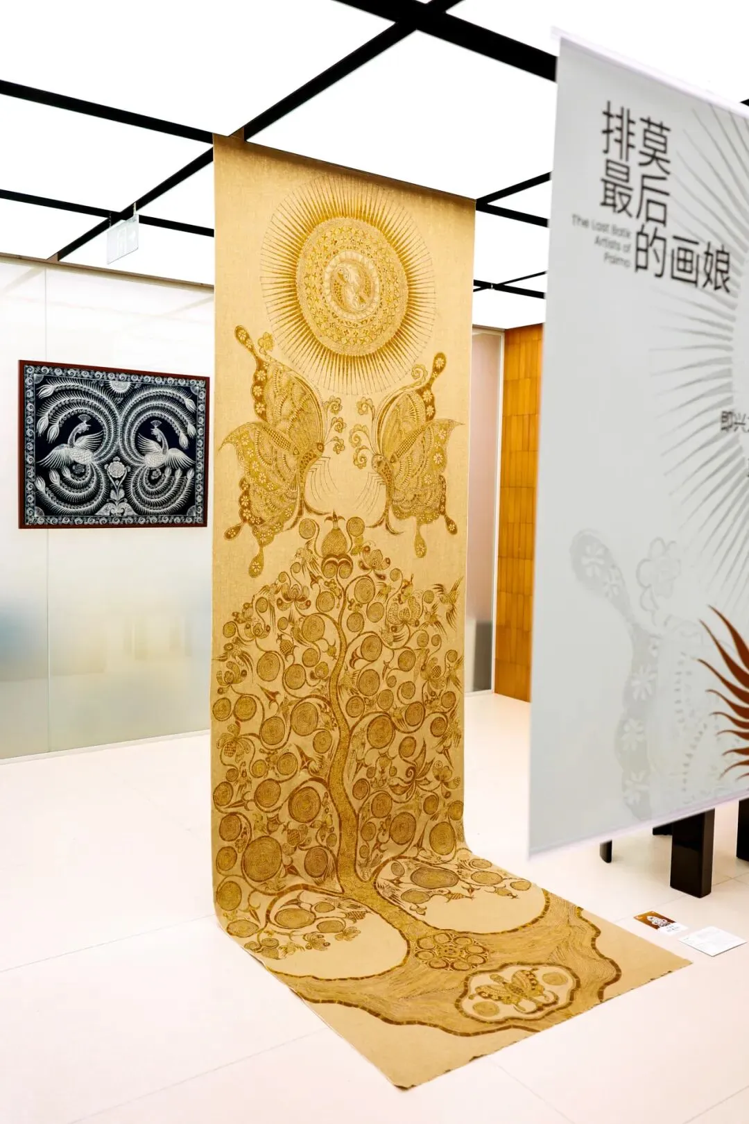 展览将源自黔东南深山的传统美学引入上海——在排莫苗寨的褶皱深处,画娘们以蜡刀为笔、蓝靛为墨,在素布上镌刻着流传千年的民族史诗。这群被誉为“原生艺术家”的画娘们,虽已步入花甲之年,却始终恪守“画蜡不画稿”的传统,以质朴的线条勾勒出苗族图腾的灵魂。