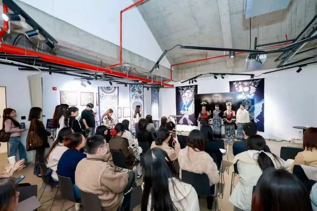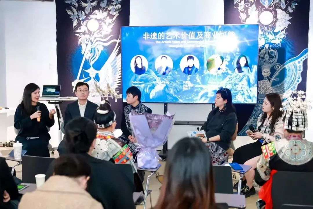 开幕论坛,Crossing Art 创始人 Catherine Lee 联袂参展艺术家,就“非遗现代化的范式重构”展开深度研讨。Catherine Lee 在主旨发言中犀利指出,本次展览并非对传统工艺的复刻式陈列,而是一次基于“地域、人物、美学、符号、色彩”五大核心维度的品牌 IP 化实验。她强调,通过将黔东南排莫苗寨的“原生火种”引渡至都市现代语境,Crossing Art 旨在打破学科边界,通过跨界共创实现非遗从静态“文化遗产”向动态“艺术资产”的范式转型,在全球化艺术市场中重塑民族美学的内生动力与商业溢价。