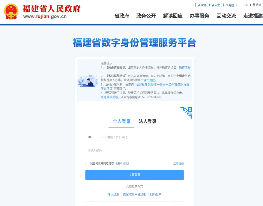 通过“福建省数字身份管理服务平台”登录后,即可选择对应业务进行办理。