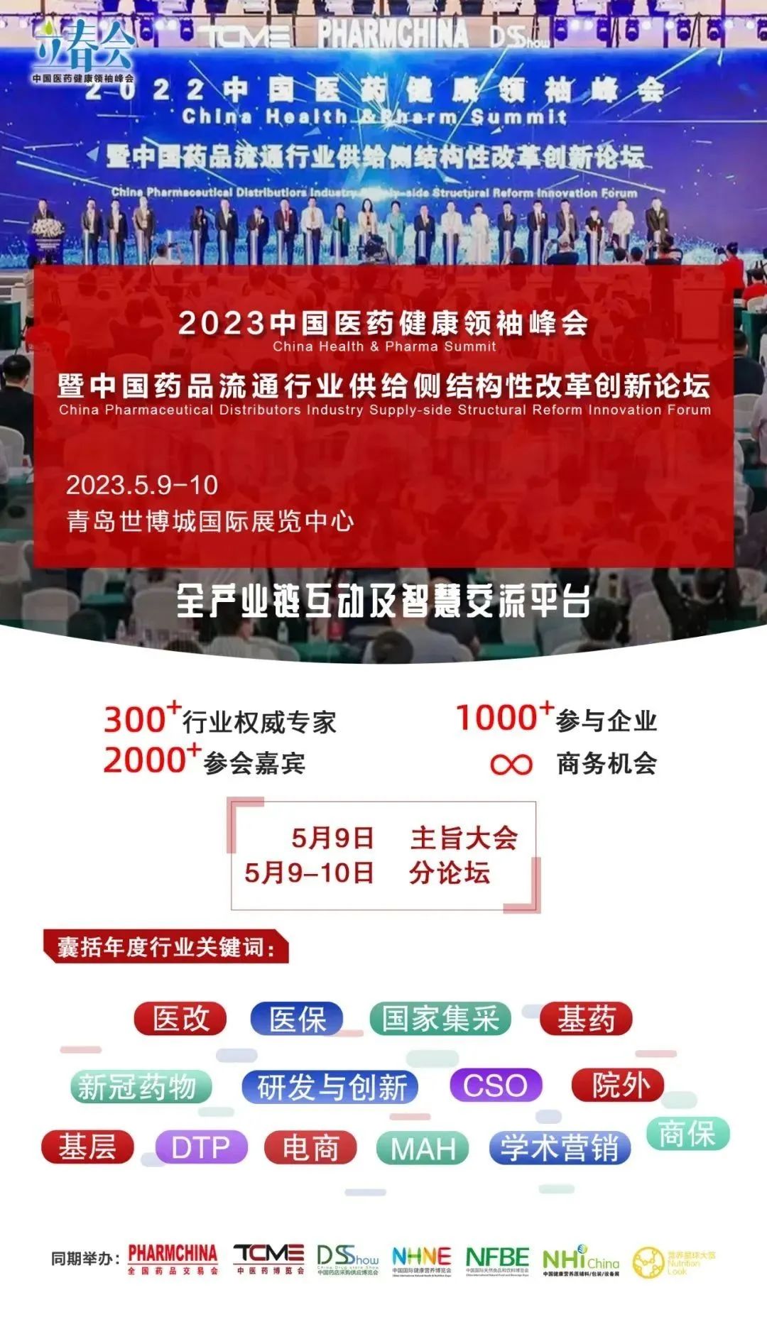 由中国医药商业协会、国药励展共同主办的2023中国医药健康领袖峰会暨中国药品流通行业供给侧结构改革创新论坛将在中铁·青岛世界博览城同期举办。峰会以一场主旨大会开启,16场主题分论坛轮番开场,形成中医药、市场营销、供应链、医美、研发与创新五大模块,近100个主题报告涵盖行业热点话题,数10场企业卫星会精彩纷呈。
