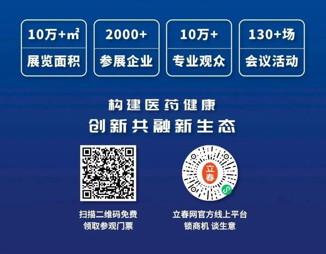 本届展会展览规模近10万平方米,将有2000余家医药大健康行业领军企业参展,为市场带来医药大健康产业丰富的产品。展出产品包括药品(化学药、中成药、OTC药品、中药材/中药饮片、中医药养生、艾炙及艾产品、生物制品)、营养与保健品(保健食品、进口功能食品、营养滋补品、特殊营养食品、特殊医学用途配方食品、健康营养原辅料/包装/设备),器械耗材(医用耗材、医疗器械、中医诊疗、诊断试剂、成人用品、个人护理用品、医美融合)、服务类(医药研发供应链、医药物流技术与设备、互联网+医药、智慧营销、注册咨询服务、OEM/ODM)等众多细分领域的相关产品。值得关注的是,展会现场除展示内容外,更有立春热门产品巡礼、医美全景展示区、中医药健康体验区等活动内容助力企业抢占市场先机,掘金颜值经济,拓展品类新启发。加拿大品牌、英国品牌、燕窝滋补等营养大健康产品组团商贸对接。