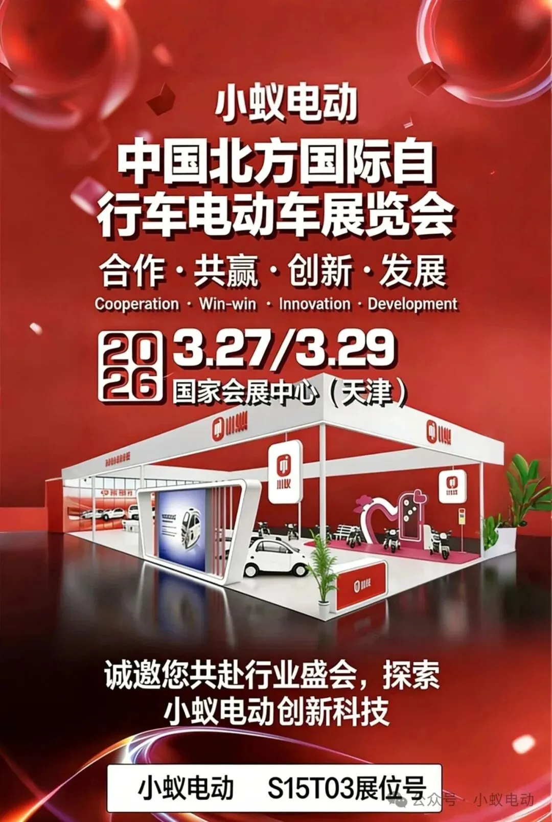 实力铸就底气,创新引领未来。3月27日-29日,国家会展中心(天津),小蚁电动在S15T03展位,静候您的莅临!小蚁电动不仅带来看得见的品质与创新,更带来面向未来的出行解决方案。诚邀行业伙伴、经销商、消费者莅临展位,共赏新品、共探机遇、共话发展,携手开启新能源出行的全新征程!