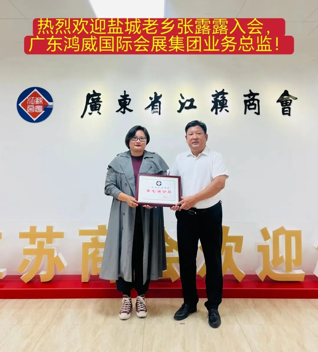 2026年3月21日,盐城籍企业家、广东鸿威国际会展集团业务总监张露露正式加入广东省江苏商会,商会秘书长张强热情接待张露露一行,带领其参观商会办公场地,并举办专题座谈会,为其颁发会员牌匾。此次加入标志着鸿威会展深度融入苏商发展圈层,为苏粤两地会展产业协同发展、资源互通搭建起全新桥梁。张露露深耕会展行业多年,任职的广东鸿威国际会展集团是享誉业界的旗舰级国际会展集团,亦是UFI国际展览联盟成员,自2002 年成立以来,已发展成为拥有30家分、子、控股公司,员工逾600 人的行业标杆企业。集团以广州为核心链接全球资源,打造 “全球一体化会展获客供应链平台”,累计举办超1000场展览、展览面积超 1200万平方米,服务展商10万余家、接待专业观众超2000万人次,2019年更是创下展览举办数量全国第一、展览面积全国第三的亮眼成绩。依托 “会展+数字孪生+大数据+云计算” 的创新模式,鸿威会展构建起全球首家会展元宇宙供应链平台,手握4.1亿+条大数据精准赋能企业获客,拥有120+项自办展IP,覆盖文旅、能源、工业、商业等多个领域,旗下世界文旅产业博览会等核心品牌展会更是入选商务部等六部委对外文化贸易 “千帆出海” 行动计划清单,成为推动中国会展产业走向世界的重要力量。目前集团正深化 “一展多国、一展多城” 战略,持续布局全球会展市场,在海内外打造了众多标杆性会展项目。座谈会上,张强秘书长对张露露的加入表示热烈欢迎,他指出,广东省江苏商会是苏粤两地企业交流合作的重要纽带,鸿威会展在数字会展、全球供应链布局上的专业实力与丰富经验,将为商会会展及相关产业发展注入新动能,商会也将充分发挥平台优势,为鸿威会展链接优质资源,助力企业进一步拓展粤港澳大湾区及全球市场。张露露表示,此次加入广东省江苏商会,既是乡情的联结,更是企业发展的新契机。未来,鸿威会展将依托商会平台,加强与苏商企业的交流合作,充分发挥自身在会展产业链整合、数字会展技术、全球获客渠道等方面的核心优势,为苏粤两地企业搭建更优质的商贸对接平台,助力两地产业资源深度融合,以专业会展力量赋能苏商企业走向全球,实现资源共享、合作共赢,共同推动苏粤会展产业高质量发展。