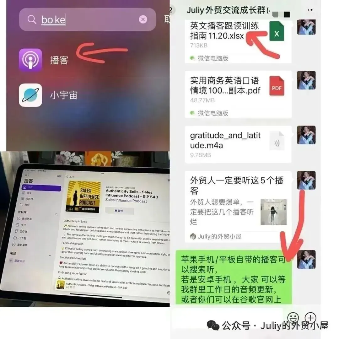 我们外贸社群里面小伙伴来自各行各业,每天针对不同外贸问题进行交流答疑互助,还有每日英文听力+口语 音频打卡练习。