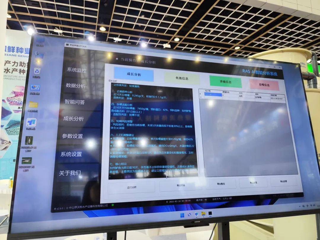“我们的系统不只是告诉养殖户‘溶氧低了’,更会建议要开启增氧机几个小时,或建议减少具体的饲料投喂量”伊沃特技术负责人解释。他还表示,以鱼类成长分析为例,系统会每10天总结一次,给出鱼类近期趋势分析、投喂适配分析、短期风险预警、1-7天调整建议和核心结论。