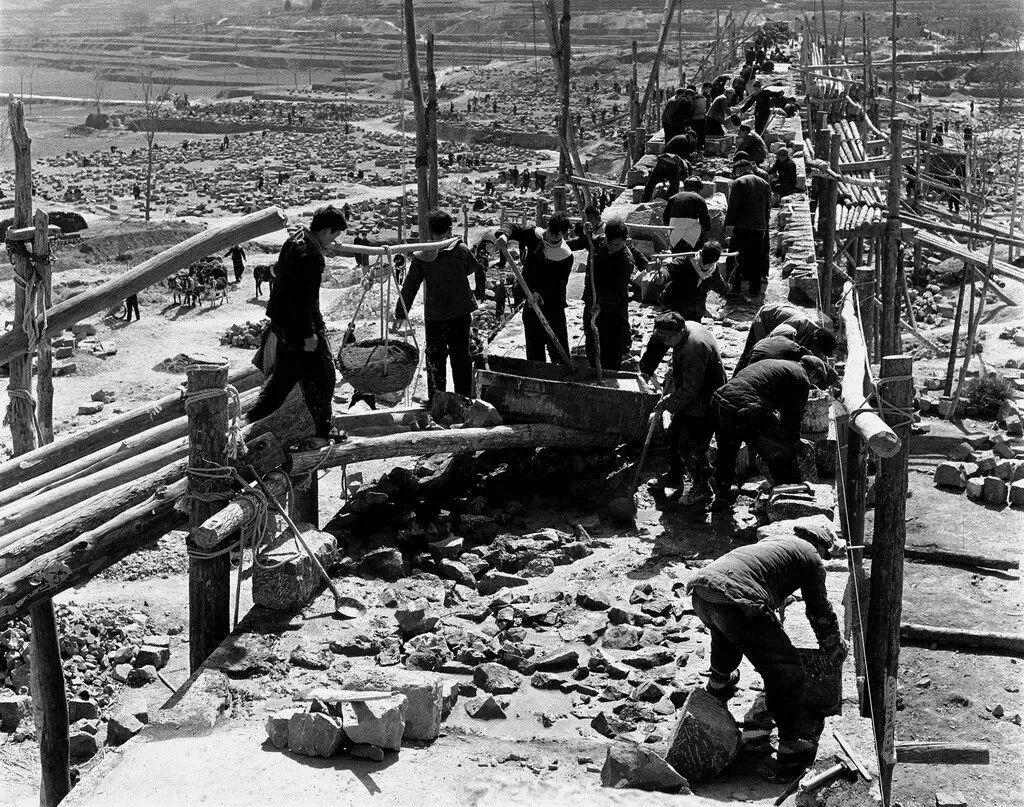 红旗渠是炮崩出来的,也是独轮车推出來的