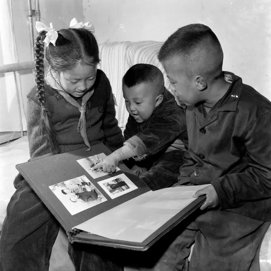 1965年,我的三个孩子在沈阳铁西区南十马路家中翻看影集。