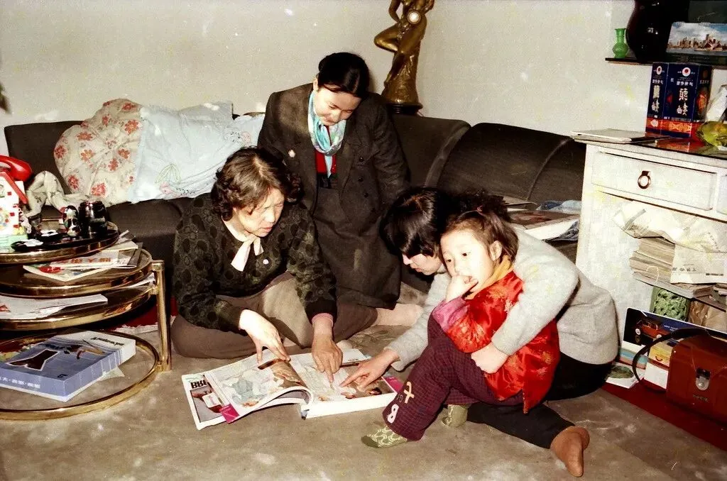 1996年,我的妻子、女儿和儿媳在研究服装样式。