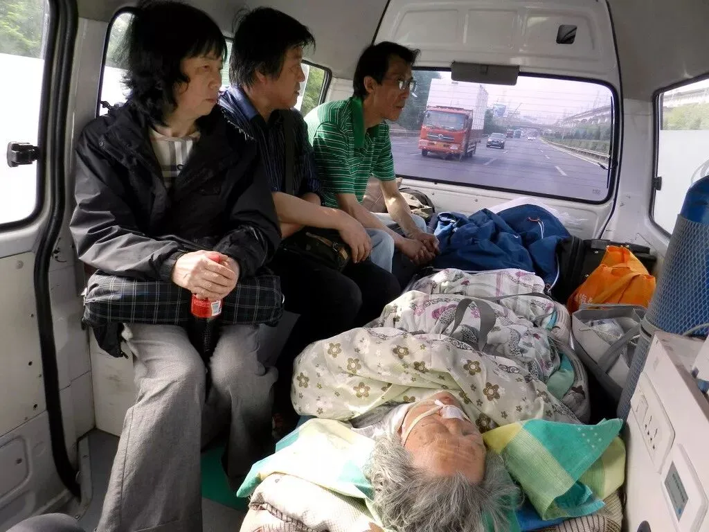 2016年,我的妻子在大连突发脑血栓,抢救过来后,女儿儿子们在急救车上陪护到沈阳。