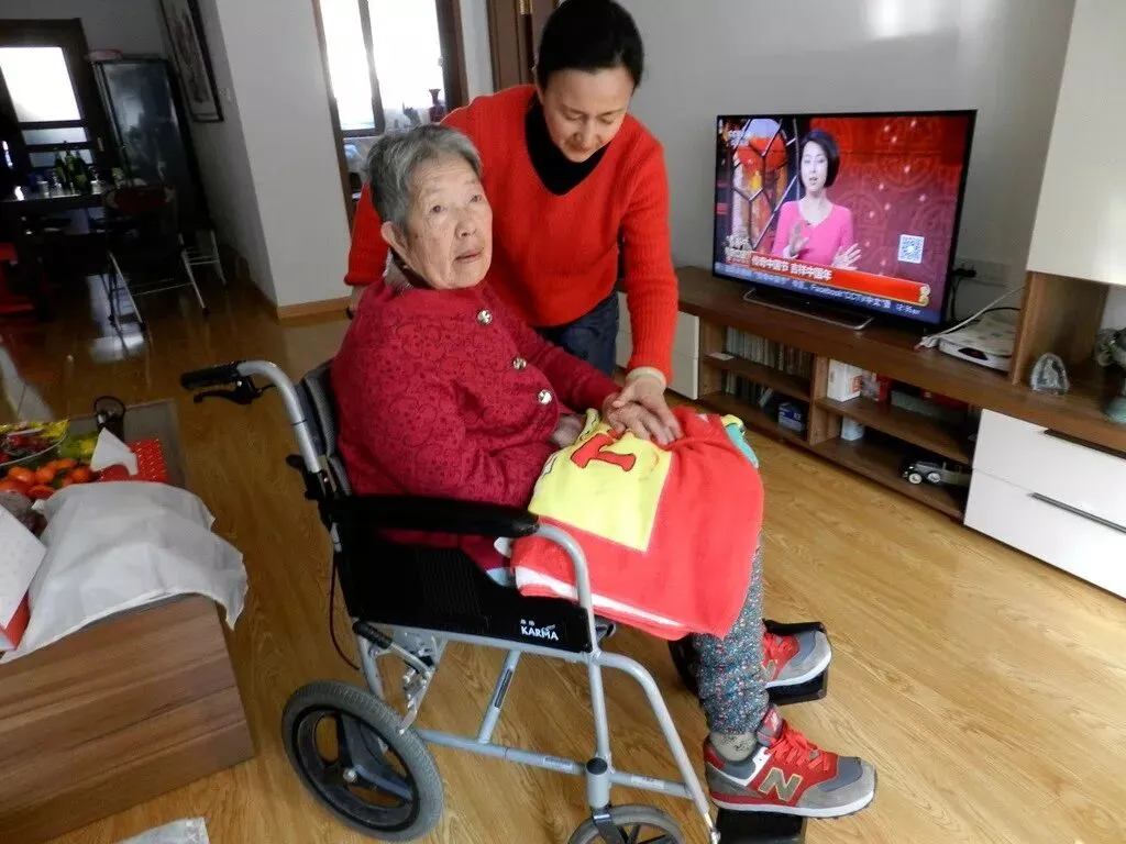 2018年,我的儿媳在沈阳浑南新区家中照顾我的老伴。