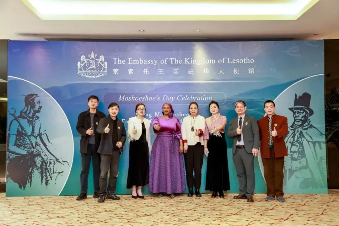 “万物有灵”部分参展艺术家及策展团队与莱索托驻华大使合影