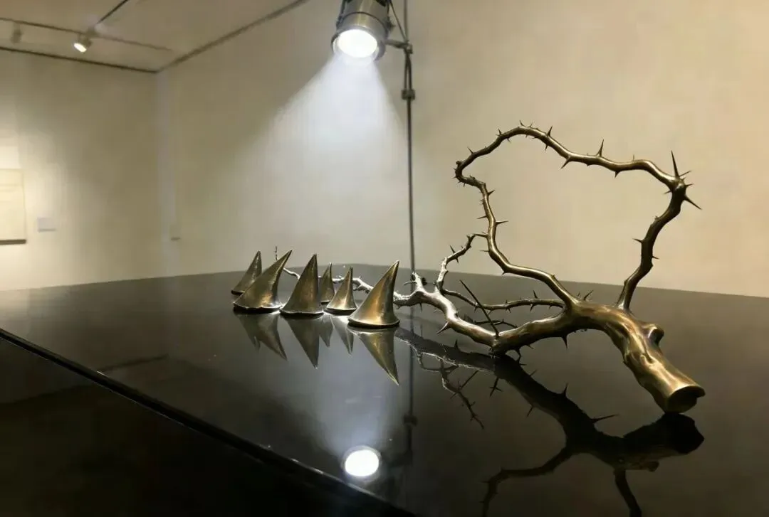 玻璃太像我们所依赖的一切:它透明、光滑、完整,甚至带着某种近乎完美的表面秩序——但这一切,都建立在一种极端的脆弱之上。它不需要暴力,只需要一个微小的偏差,就会破裂。那些生长在树枝上的玻璃刺,是这次作品中最直接、也最诚实的部分。它们不只是关于“脆弱”。它们更像是我们所处的状态本身,一种同时具有保护与伤害的存在。