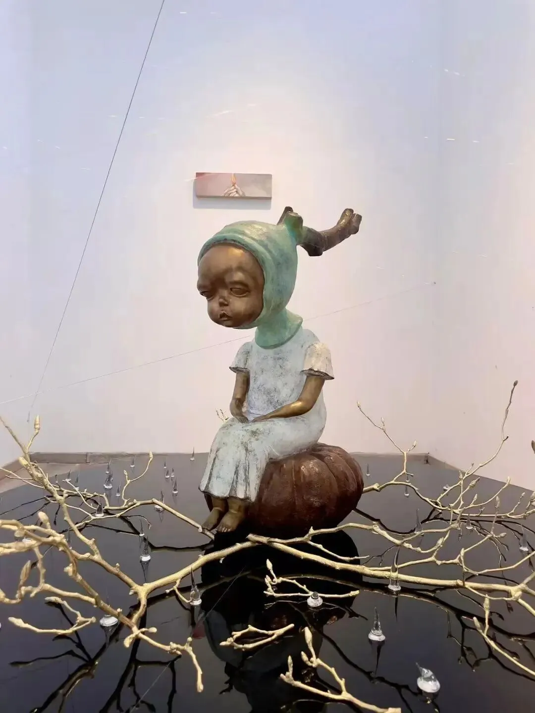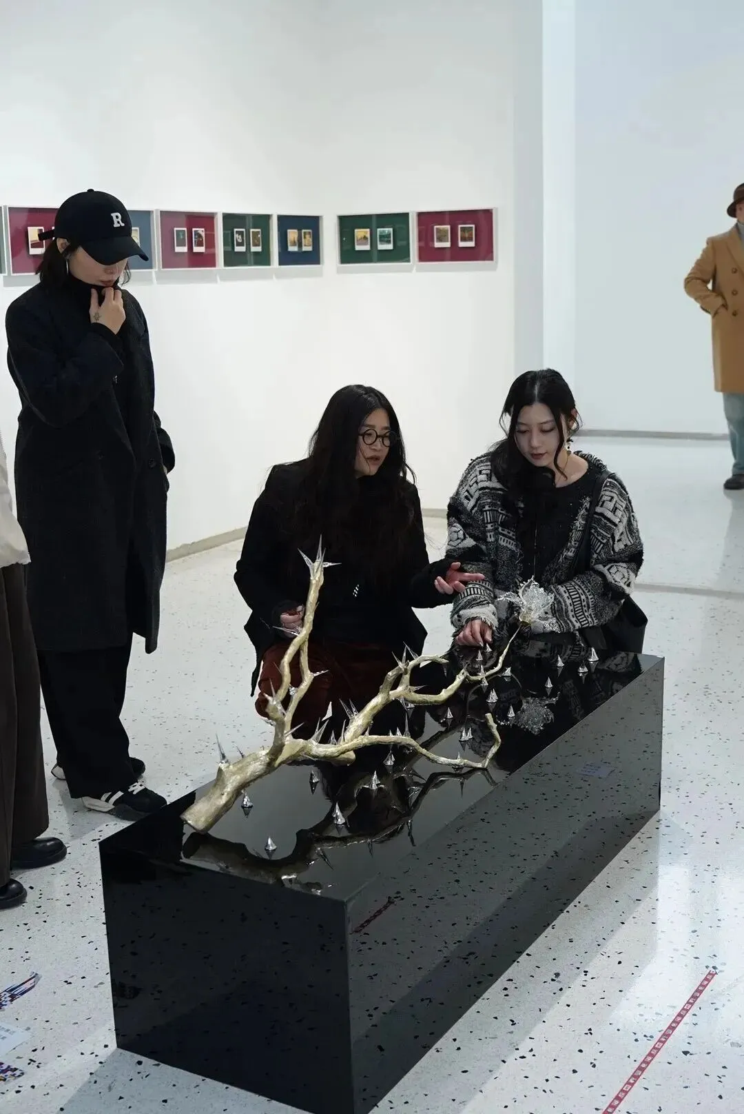 The glass thorns growing along the branches are among the most direct — and most honest — elements in these works.