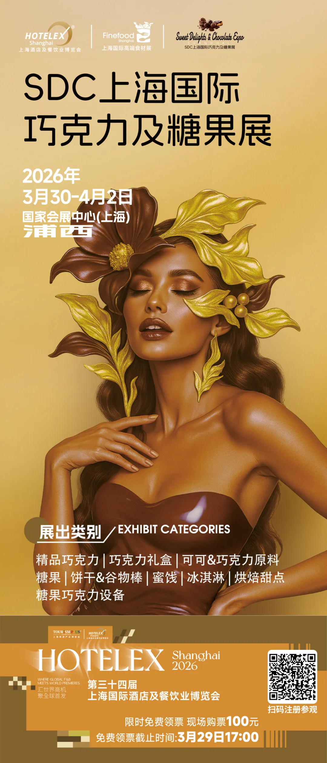 HOTELEX 2026第三十四届上海国际酒店及餐饮业博览会,将于2026年3月30日-4月2日在上海浦西·虹桥@国家会展中心盛大举办!同时引入来自酒店及餐饮业、食品饮料、咖啡茶饮、连锁加盟等行业上游供应链的千家优质展商、更以数十项精彩丰富的活动赛事及高峰论坛为万名专业观众呈现出一场精彩的食饮盛宴!