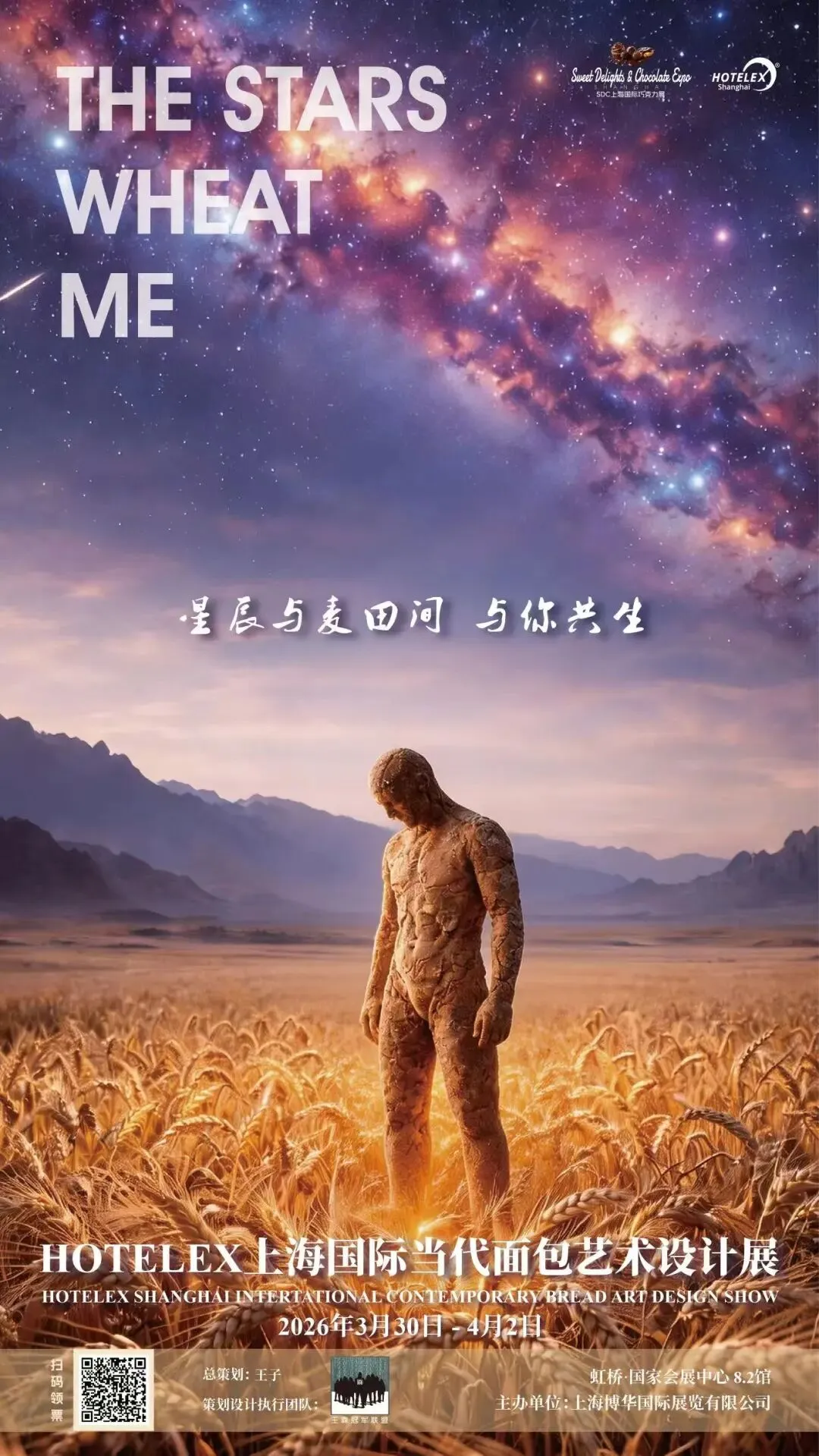 步入HOTELEX上海国际当代面包艺术设计展,你会发现面包远不止是食物。以“星辰与麦田间·与你共生”为主题,21件用面包制作的人形艺术装置将颠覆你的认知。策展团队试图通过这种极易腐坏却又充满生命力的媒介,探讨人与自然、文明与供养系统之间的关系。这是一场属于面包的哲学思考。