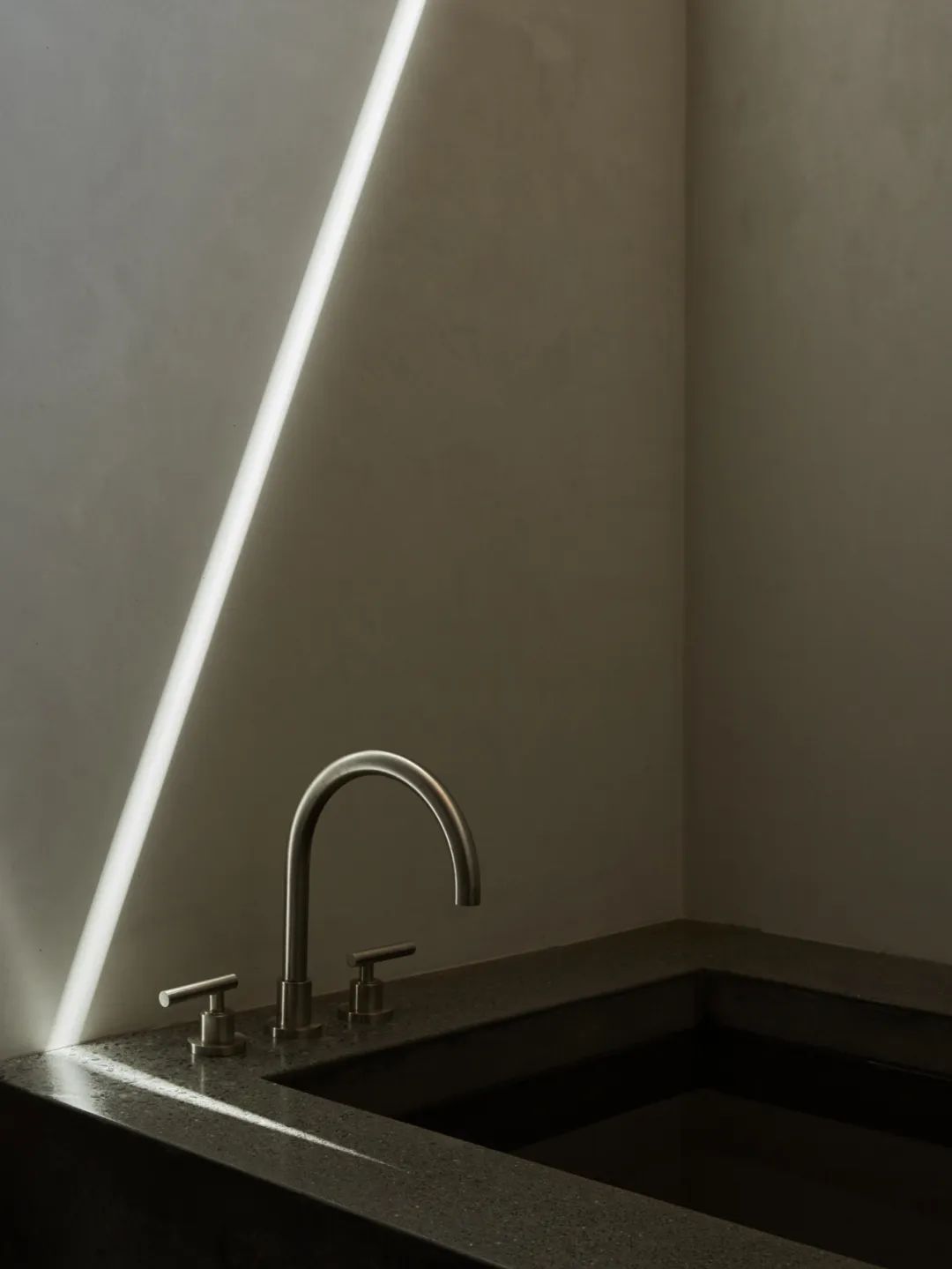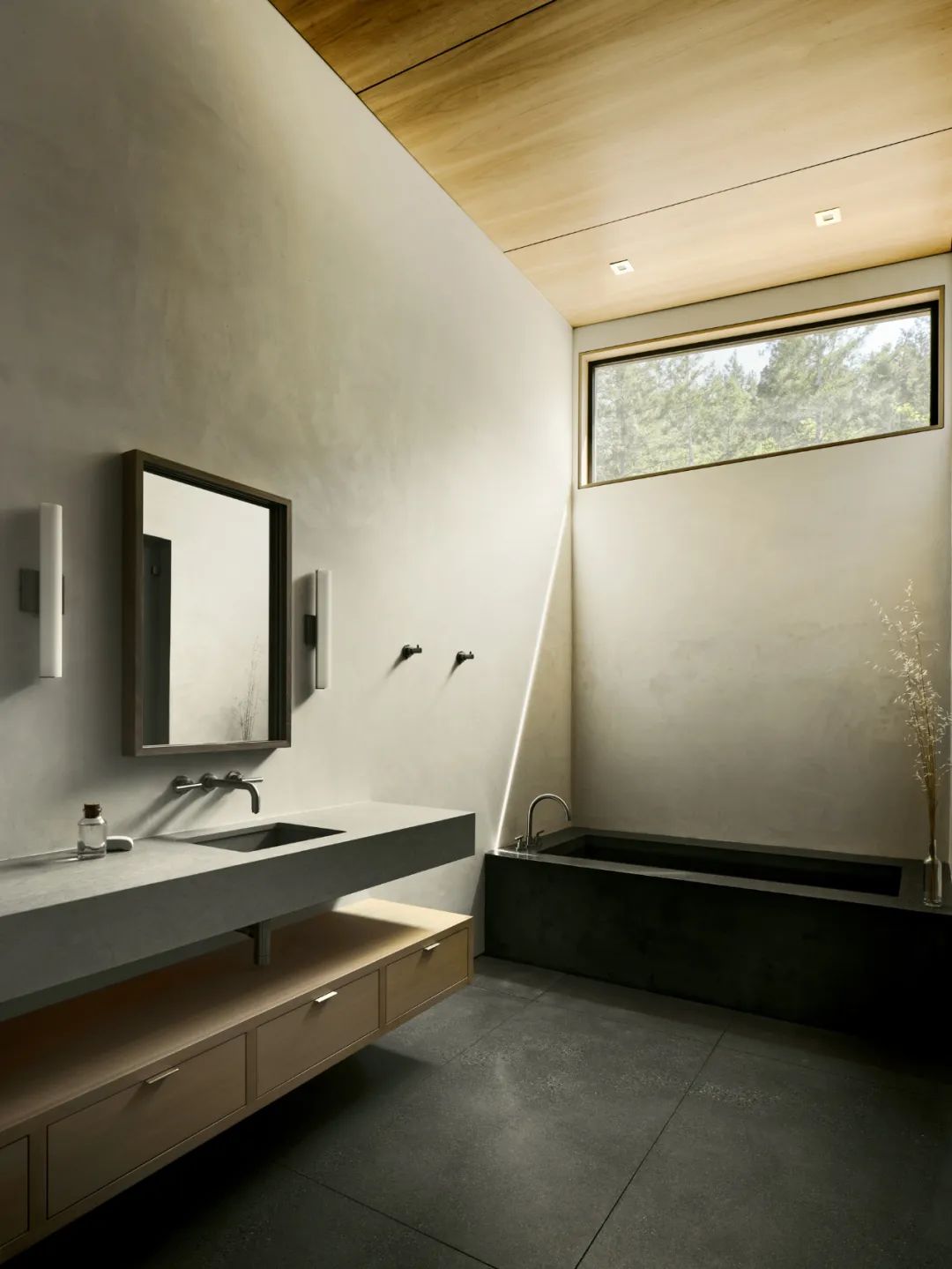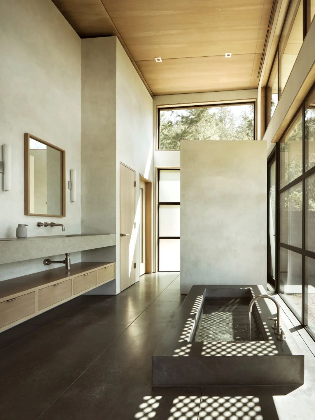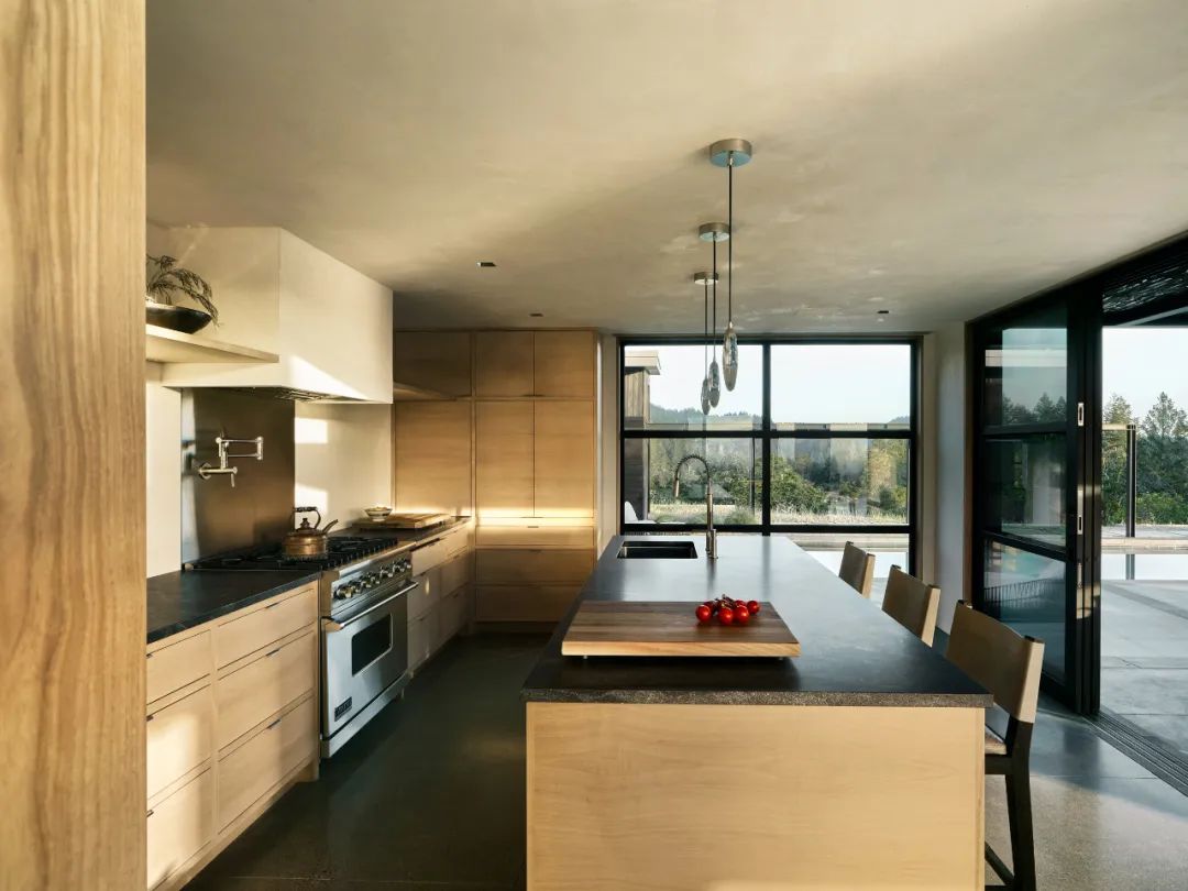 住宅向东侧扩展,插入了一个更新的、隐蔽的主套房,俯瞰着谷底和远山的广阔景色,新的扩建部分完美地与原有部分融合为一个优雅的整体。一个为休闲娱乐和家庭用餐而设计的新厨房坐落在公共和私密部分之间的十字路口,延伸到户外生活、餐饮和游泳池空间。