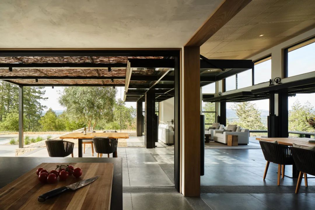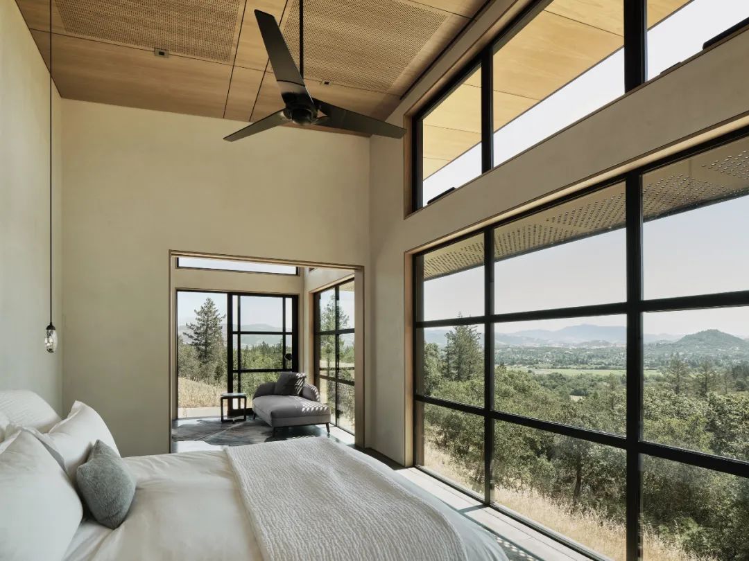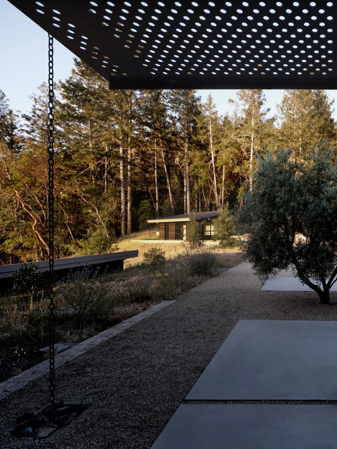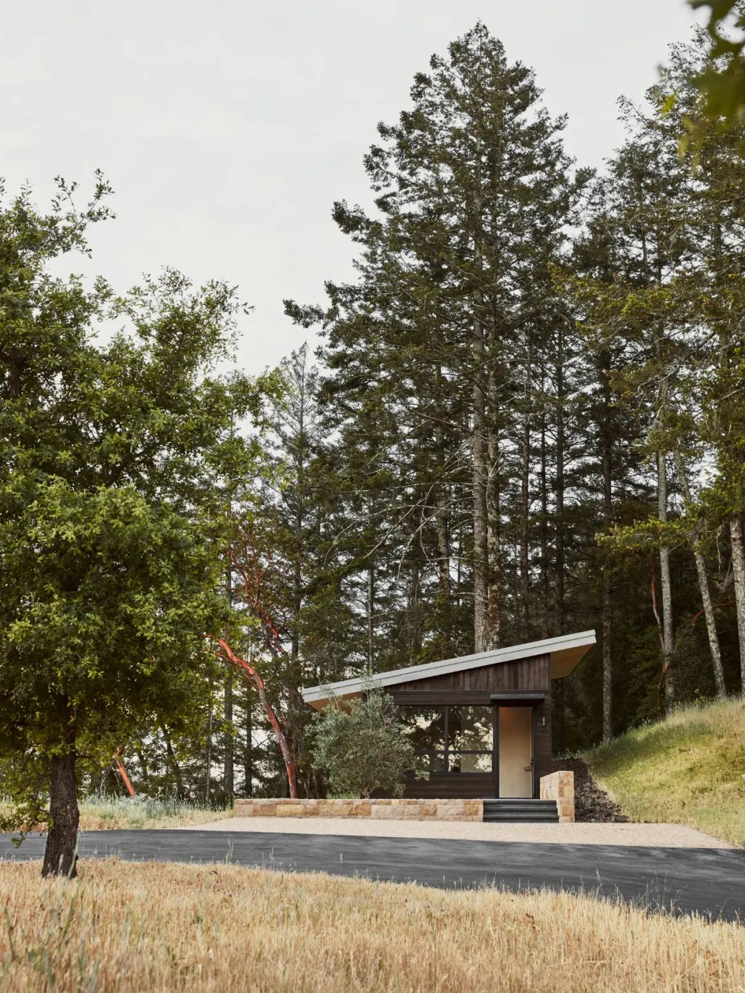 索诺玛葡萄酒之乡的第二阶段设计意在将原本的一居室别墅转变为一个不断拓展的动态家庭庇护所。最初,设计只包括一个紧凑的厨房、主卧和坐落在山顶可以俯瞰希尔兹堡的客房。