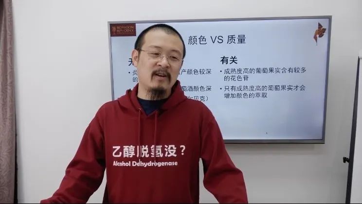 “我刚接触葡萄酒的时候,听说过这样一个说法,酒的颜色越深,酒的质量越高。事实上,这种说法‘对错参半’。因为,很多浅色的酒,比如歌海娜和黑皮诺,并不能说它们质量不好。有些葡萄酒的颜色很深,可能是受种植环境温度较高的影响,使其色素积累比较多,但这并不代表这瓶酒具有浓郁的风味和较长的余味!”
