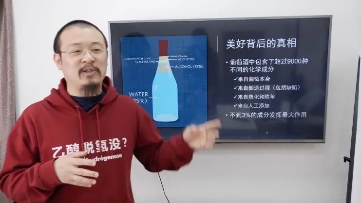 葡萄酒中超过97%的成分是水和酒精,真正对感官产生影响的风味物质,包括花色苷、糖、酸、单宁以及香气相关的物质等所占比例其实只有不到3%。