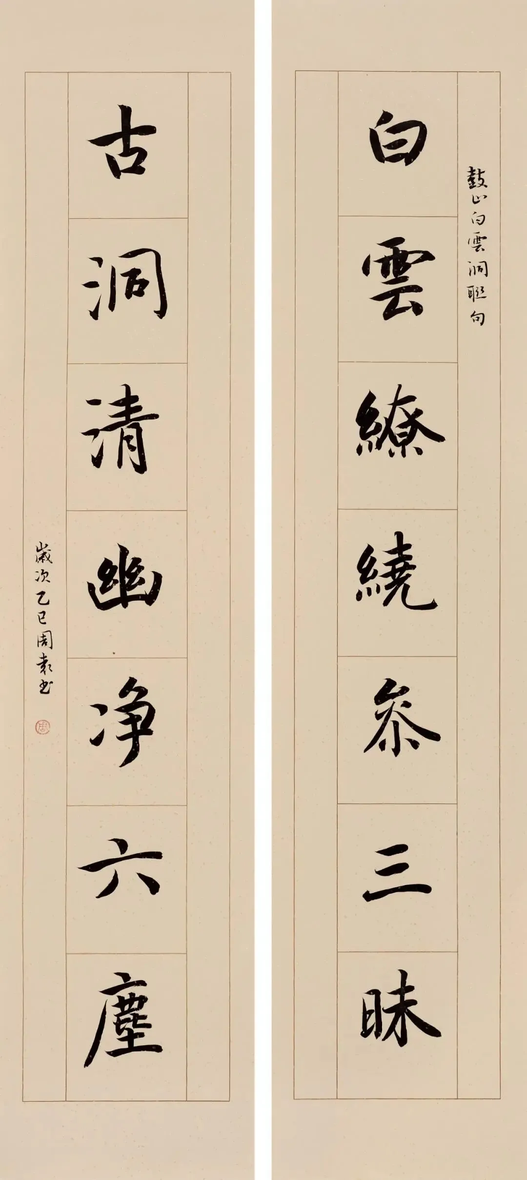 楷书 《白云·古洞》联 69cm × 30cm