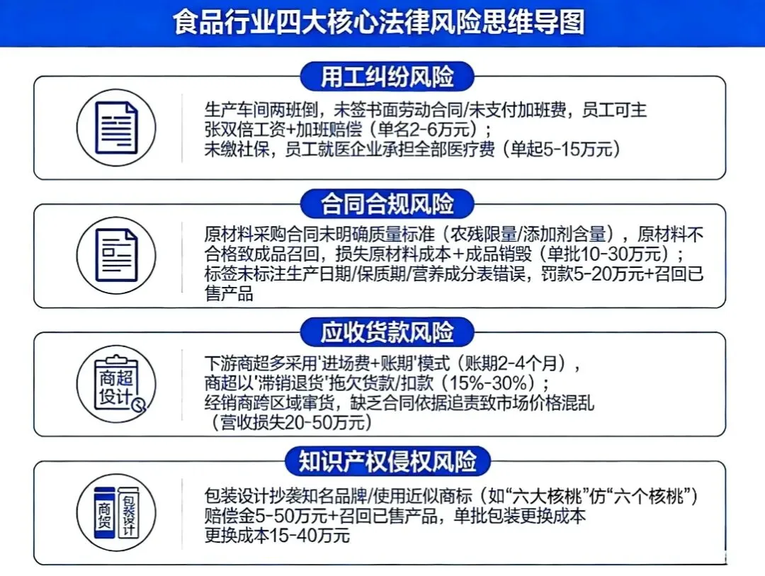 食品行业四大核心法律风险,每一项都可能威胁企业生存: