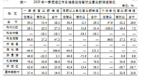 【统计报告】通辽市一季度住宿餐饮业持续回暖