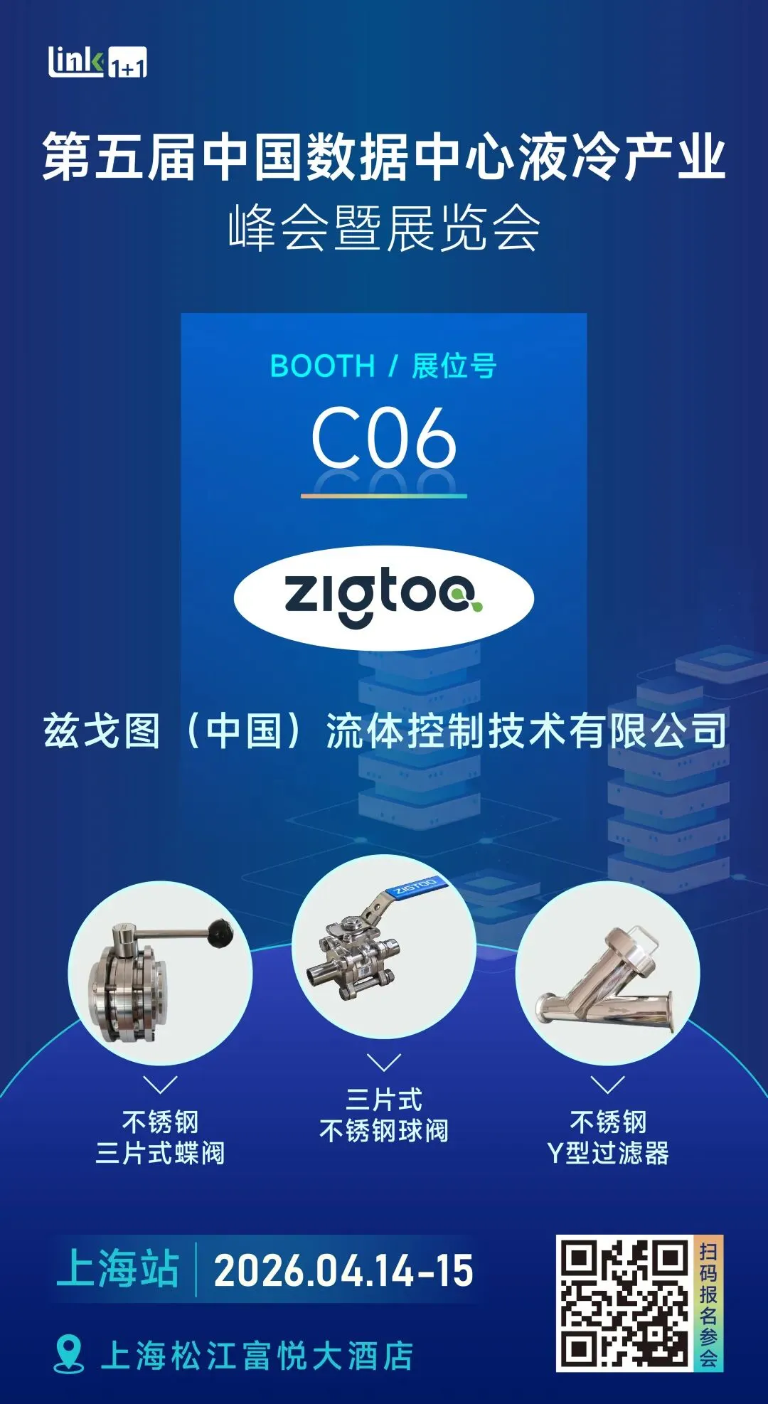 ZIGTOO 源自英国,是专业的流体控制产品和服务供应商,设计与制造的产品广泛应用于各类水工业领域,近年来为推进全球化发展,成功组建 ZIGTOO 水工业集团。集团始终秉承 “品质铸信赖,服务赢未来” 的理念,在暖通、给排水阀门设计及制造等方面实现品质、舒适、安全、节能、环保的完美结合,拥有 200 余种产品,多年来广泛应用于能源、水处理、市政工程、楼宇建筑、数据中心等行业,凭借高效可靠的产品与服务赢得广大客户信赖。ZIGTOO 集团致力于为客户提供舒适安全且节能环保的全方位解决方案,助力客户可持续发展、降低系统运行成本,持续创新节能技术,坚持不懈打造高品质产品、提供优质服务。本届峰会兹戈图隆重出席,并展出蝶阀,球阀,过滤器等产品,为行业客户提供数据中心用阀方案。不锈钢三片式蝶阀:不锈钢三片式蝶阀具有较强的耐酸碱和耐高温性能,永久压缩变形小,精密锻造阀芯∶快装产品耐≤1.0MPa,无弯曲;金相结构优于精密铸件;具有扭矩小,寿命长等特点,正常 开关 10 万次以上;三片式不锈钢球阀:三片式球阀全通径及全包密封阀门设计,极度减小流体阻力和残留,因此使得此阀门用于处理真空设备或黏性流体的最佳选择。全包式球阀设计、无滞留、高洁净,满足 CIP、SIP 杀菌和清洗要求,自动补偿密封设计,具有扭矩小。不锈钢Y型过滤器:不锈钢 Y 型过滤器主要用于过滤含有固体颗粒的介质,保护泵、末端设备及仪器仪表等正常工作。本次展会兹戈图展位位于C06展位,欢迎行业上下游合作伙伴莅临兹戈图展位参观交流。关注我们获取更多精彩内容