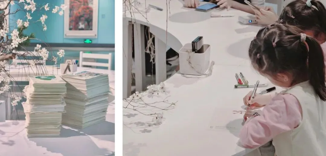 展览互动区开放至今,大家已留下了近2000件手绘作品。一张张画卡拼凑出了独属于美术馆的浪漫风景,每一幅作品都饱含对桃源的向往。