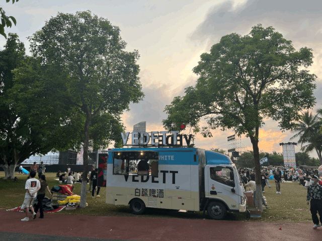2023年海口迷笛的啤酒大巴,在旗帜下