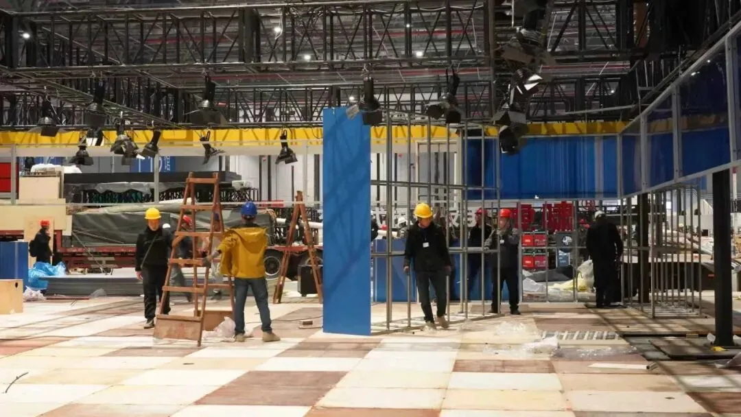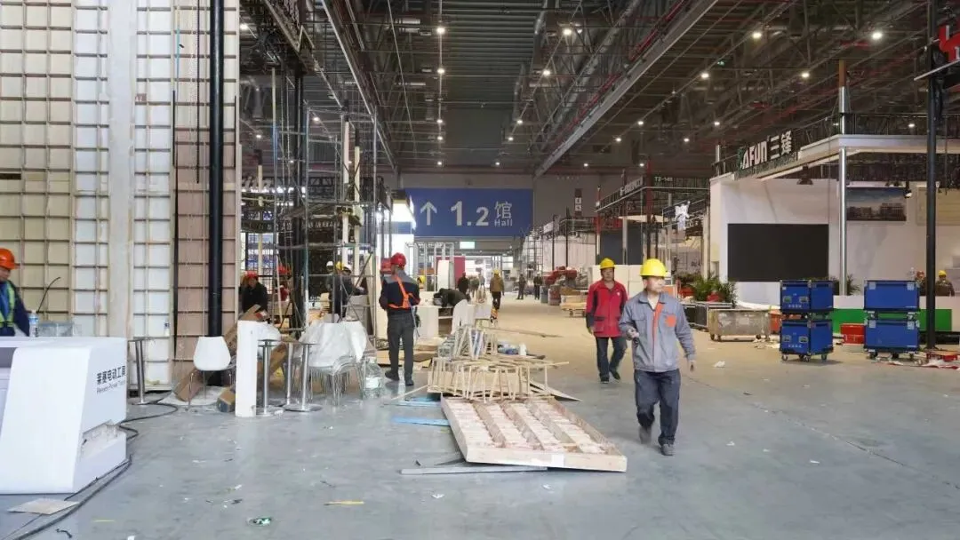 馆内热火朝天、展台精心布置