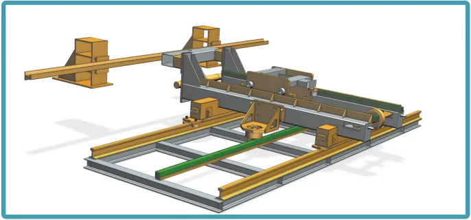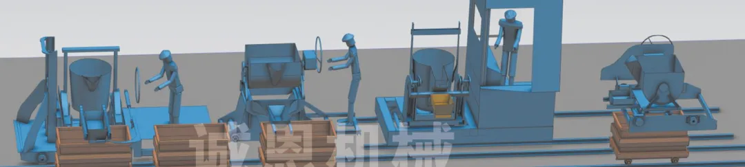 摆渡主要靠齿轮齿条行走,可平稳接送砂箱。
