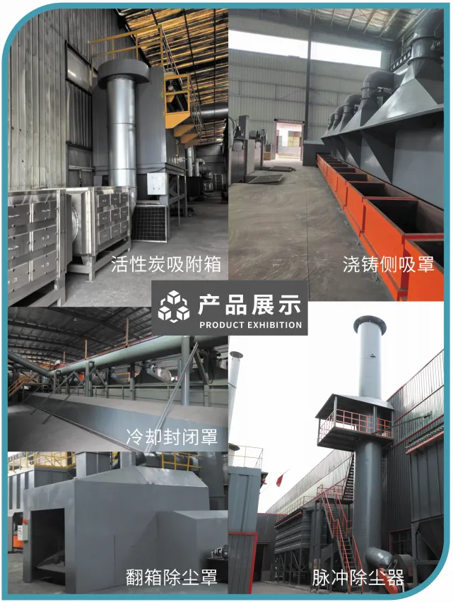 本设备采用双层滚筒结构,等于物料输送距离大了一倍,滚筒外层采用水冷,通过滚筒外壁的循环水将物料热量带走;滚筒内层采用风冷,通过高压风机将滚筒内的热量直接移走。此设备结构简单,降温效果显著。性能特点:物料通过三道被水包围的管道与外面水箱的循环水进行热量交换热水由闭式冷却塔进行冷却,出来的冷水进入设备水箱中完成循环。由于循环处于密封状态,则能保证物料不会受潮以及循环水不受污染。 采用双层筛网结构,粗砂,细砂一次性筛出。筛网使用不锈钢长条孔,不易堵塞,耐磨性强,圆筒筛具有筛分能力强,噪音小,易于封闭无烟尘的特点。 本公司生产的浇铸测吸罩采用流动集中式除尘,每台罩子上带有电控气动阀门,随开随关,避免风量浪费。冷却封闭罩结构牢固,外形美观。翻箱出货区域是尘烟重点区,兼具日常检修维护,我厂设计翻箱除尘罩时将摆渡车封闭罩一并考虑当中,整体除尘效果显著,配套设备常用脉冲除尘器、活性炭吸附箱、除尘风机、烟筒、整体管道布置,给出一站式解决方案。
